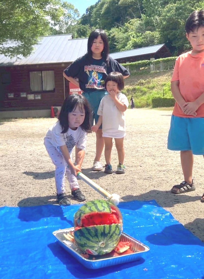 昼食後はスイカ割も行いました。